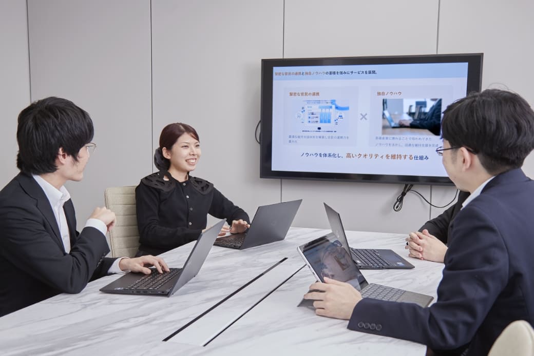 メーカー派遣を通じてシステムに関するより詳細な知識を習得。実際にお客様との会議出席・問合せ対応を通じて、システムへの理解を深めます。