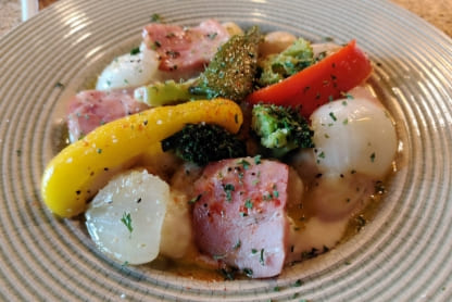 出張先では、食事も楽しみの一つです。駐屯地ごとにある食堂のご当地メニューを食べたり、普段は会えない社内外のメンバーと食事をすることもあります。